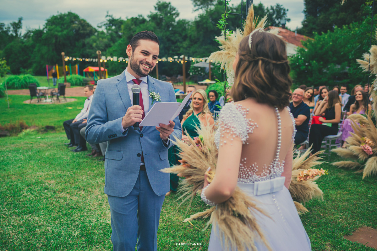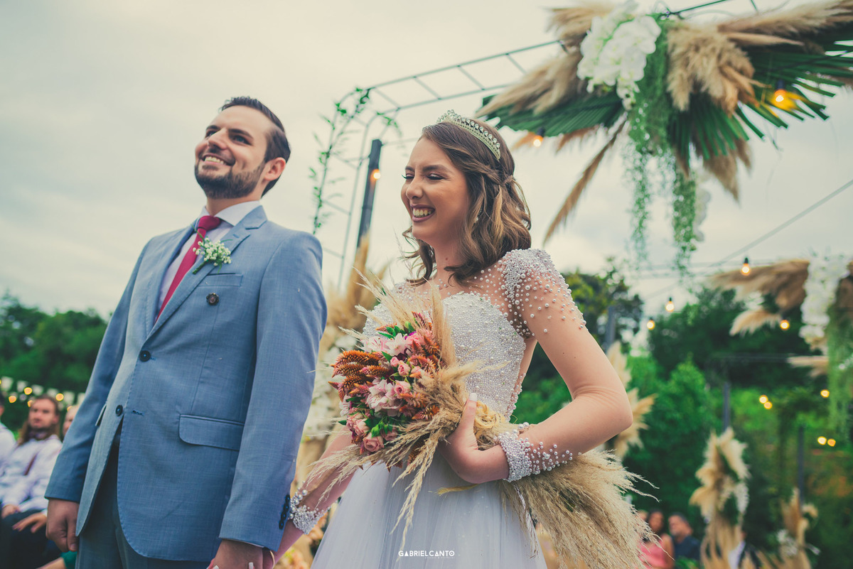 A cerimonia ao ar livre foi linda e leve, repleta de amor e carinho. E a festa marcou muito bem a grandeza dessa celebração, sendo cheia de alegria e diversão, tanto pelos noivos como pelos convidados.