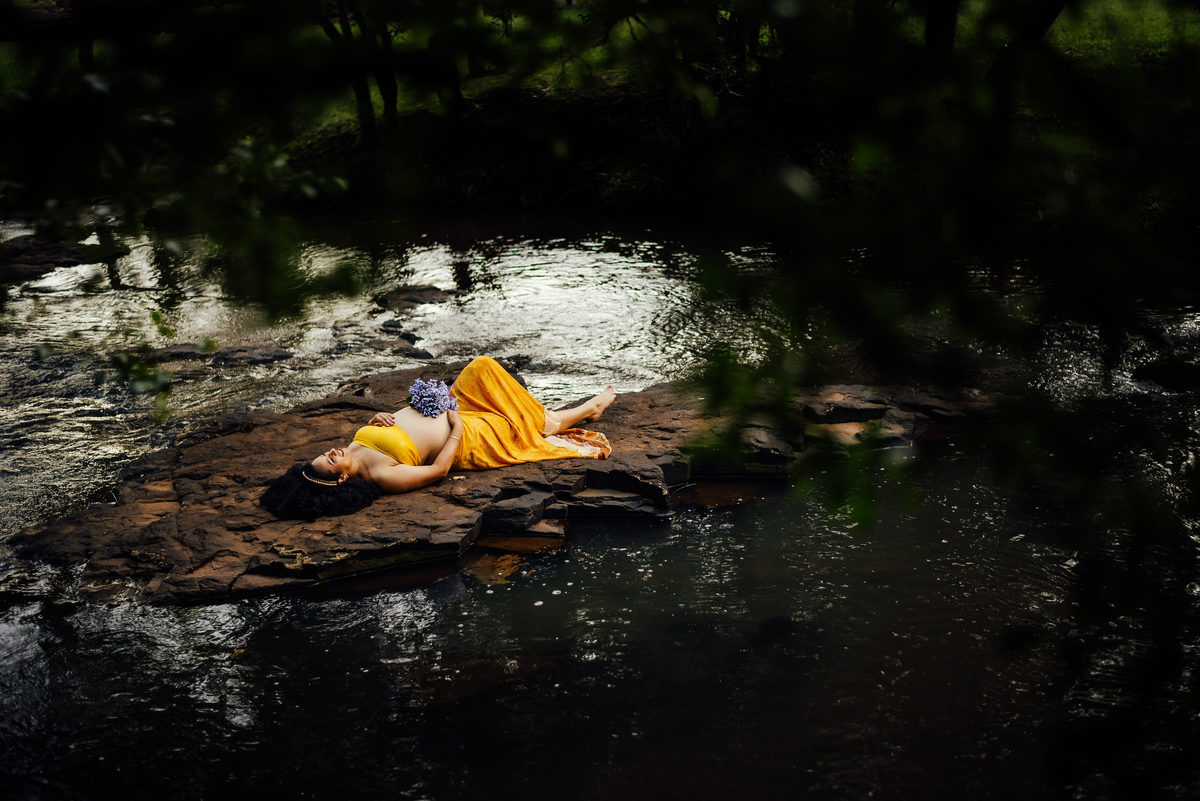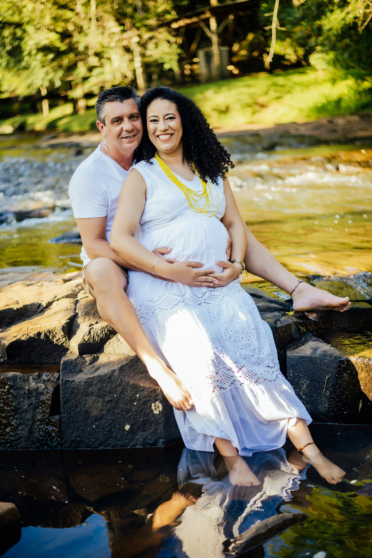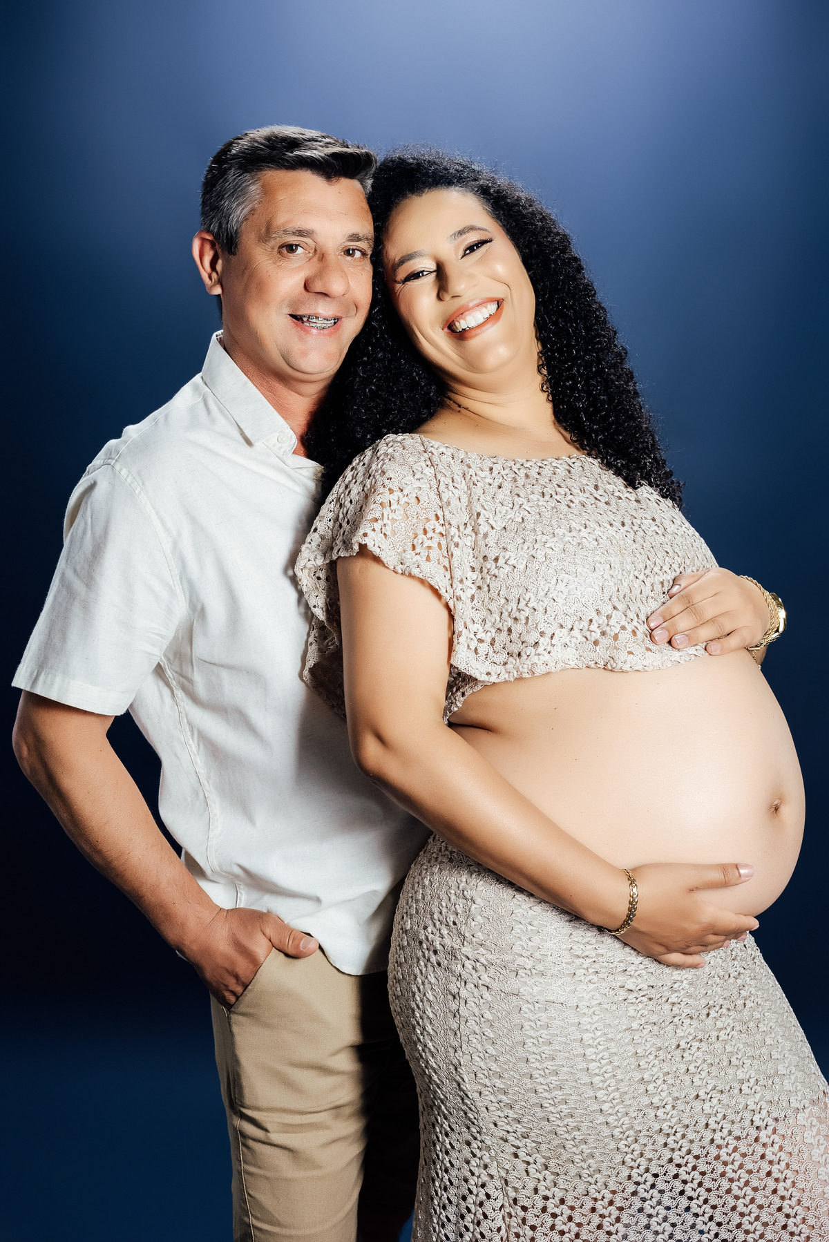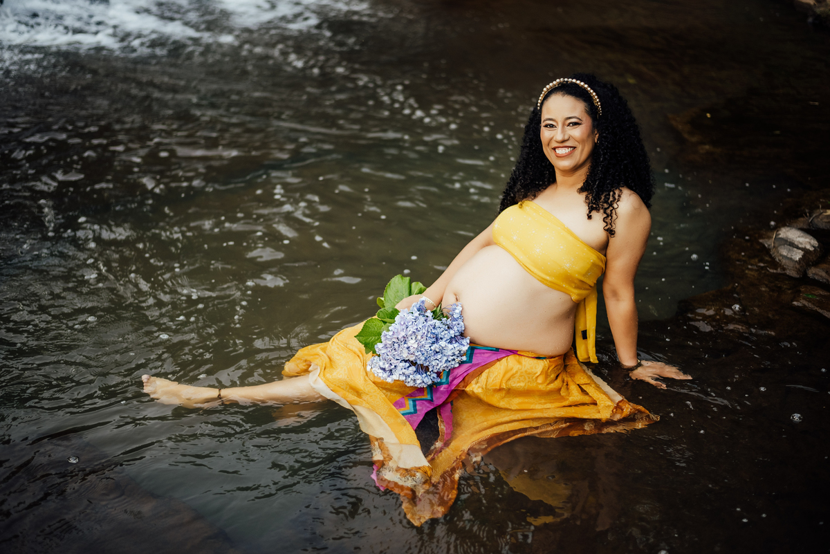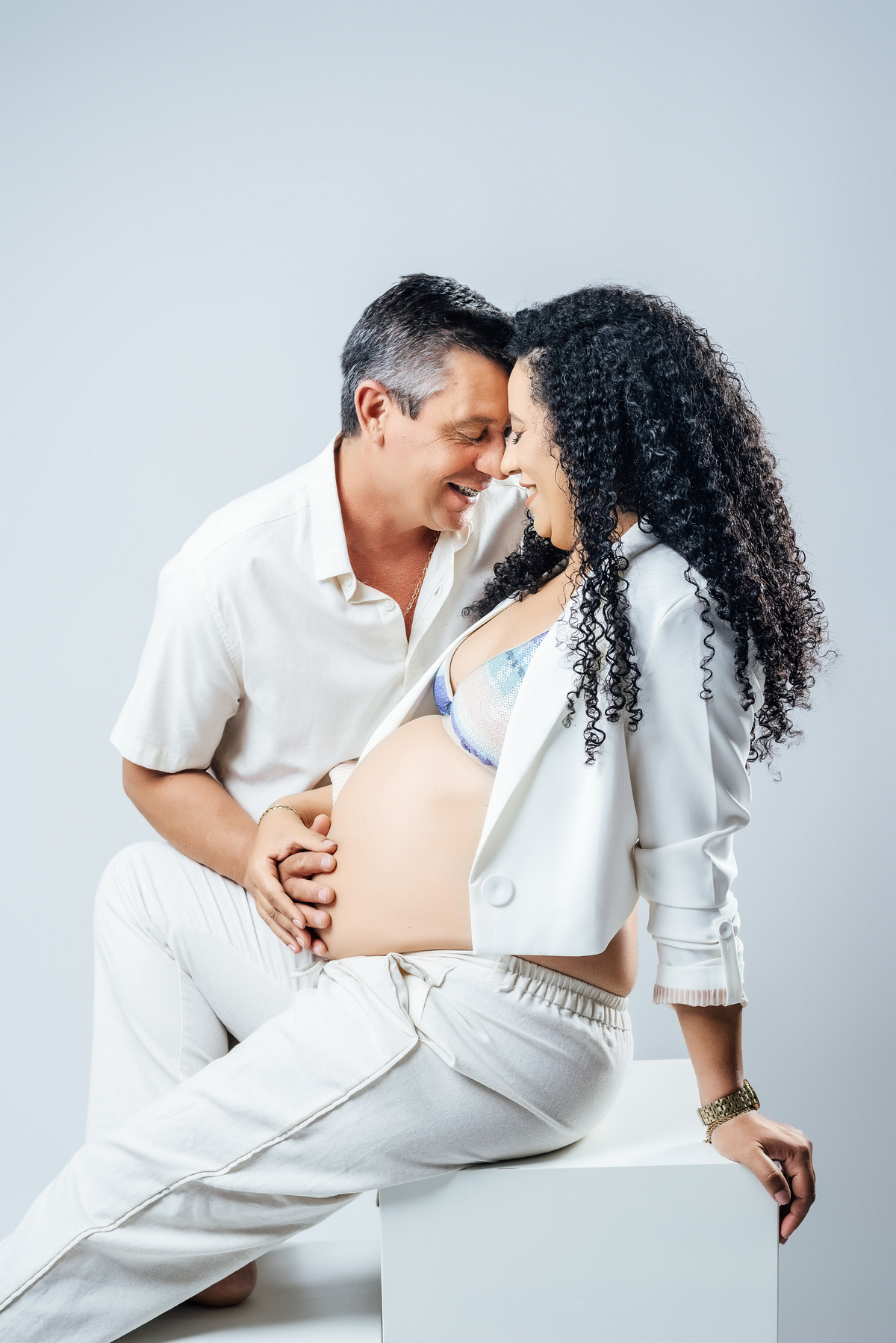 Durante o ensaio, especialmente nas fotos externas, eles trouxeram elementos das suas crenças e daquilo que representa sua fé. Isso transformou tudo em algo ainda mais significativo, porque não eram apenas imagens de uma gestação, eram símbolos de uma história construída com confiança, espiritualidade e amor.