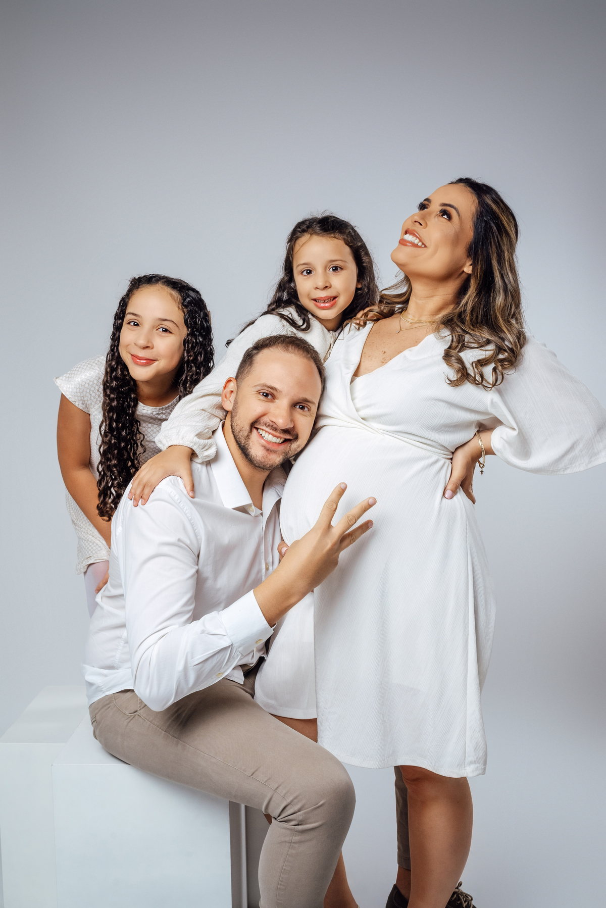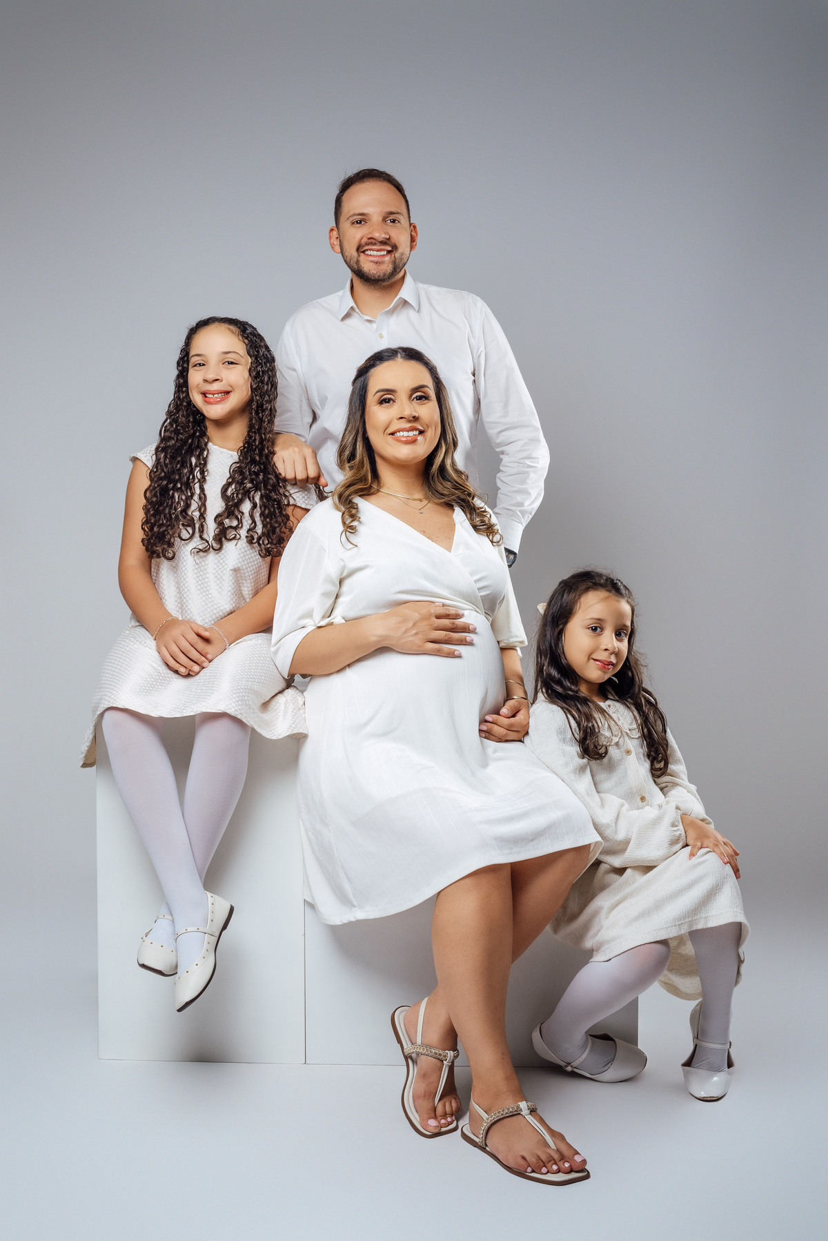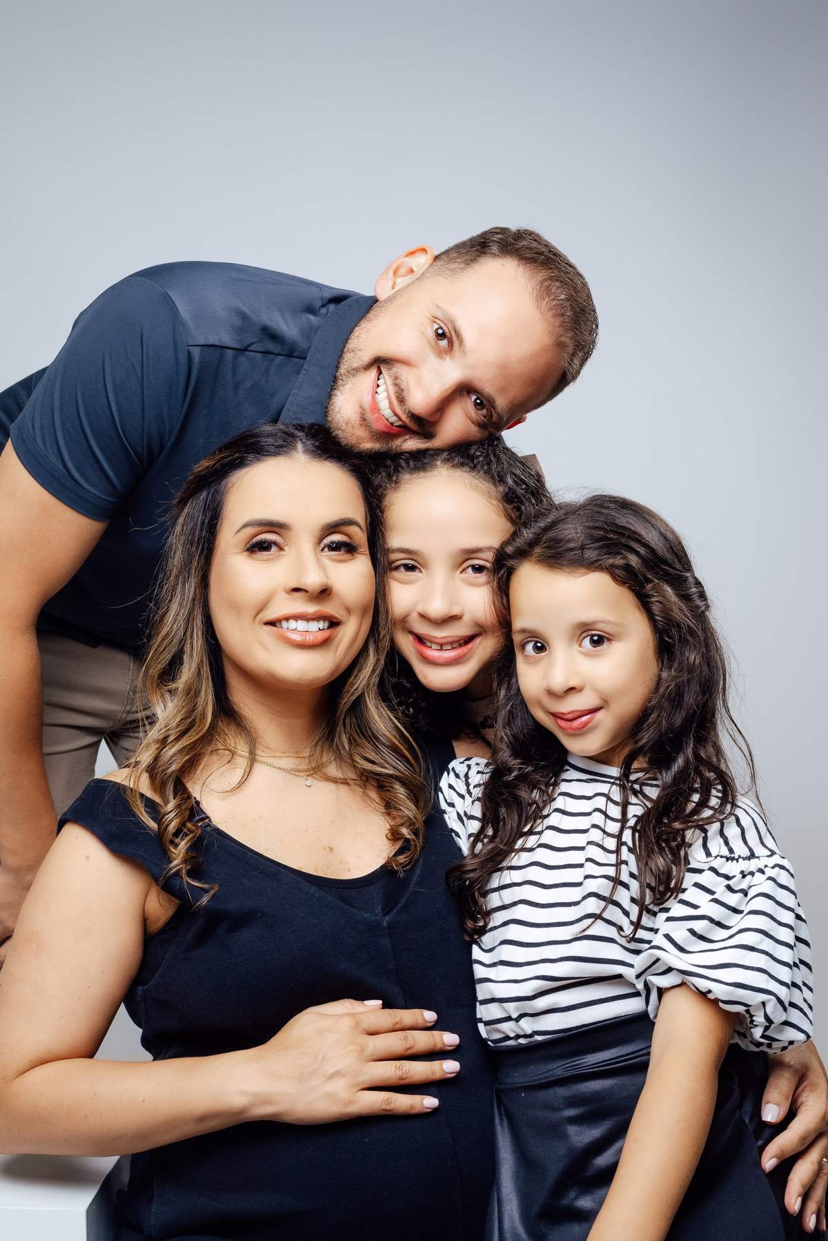 As duas irmãs mais velhas trouxeram ainda mais vida para o ensaio, com aquele carinho cheio de curiosidade e expectativa pela chegada do irmão.